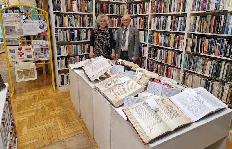 Mirna Lipovac i Darko Žubrinić u Knjižnici Špansko - jug u Zagrebu 2024.: izložba knjiga iz fonda DPG-a.